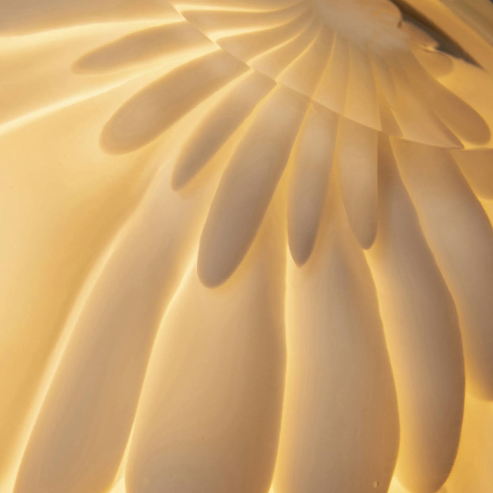 The 118 wall or ceiling light accompanies you with its thoughtful design, which sensitively translates the delicate, feathery structures of glassblowing artistry. When you switch on the light, subtle, organic patterns are revealed, reminiscent of natural forms and adding depth to your room. This light celebrates the special quality of glass – its ability to capture fleeting, vibrant moments in lasting beauty. A reliable companion for your home, it unites warmth and artistic refinement in perfect harmony.