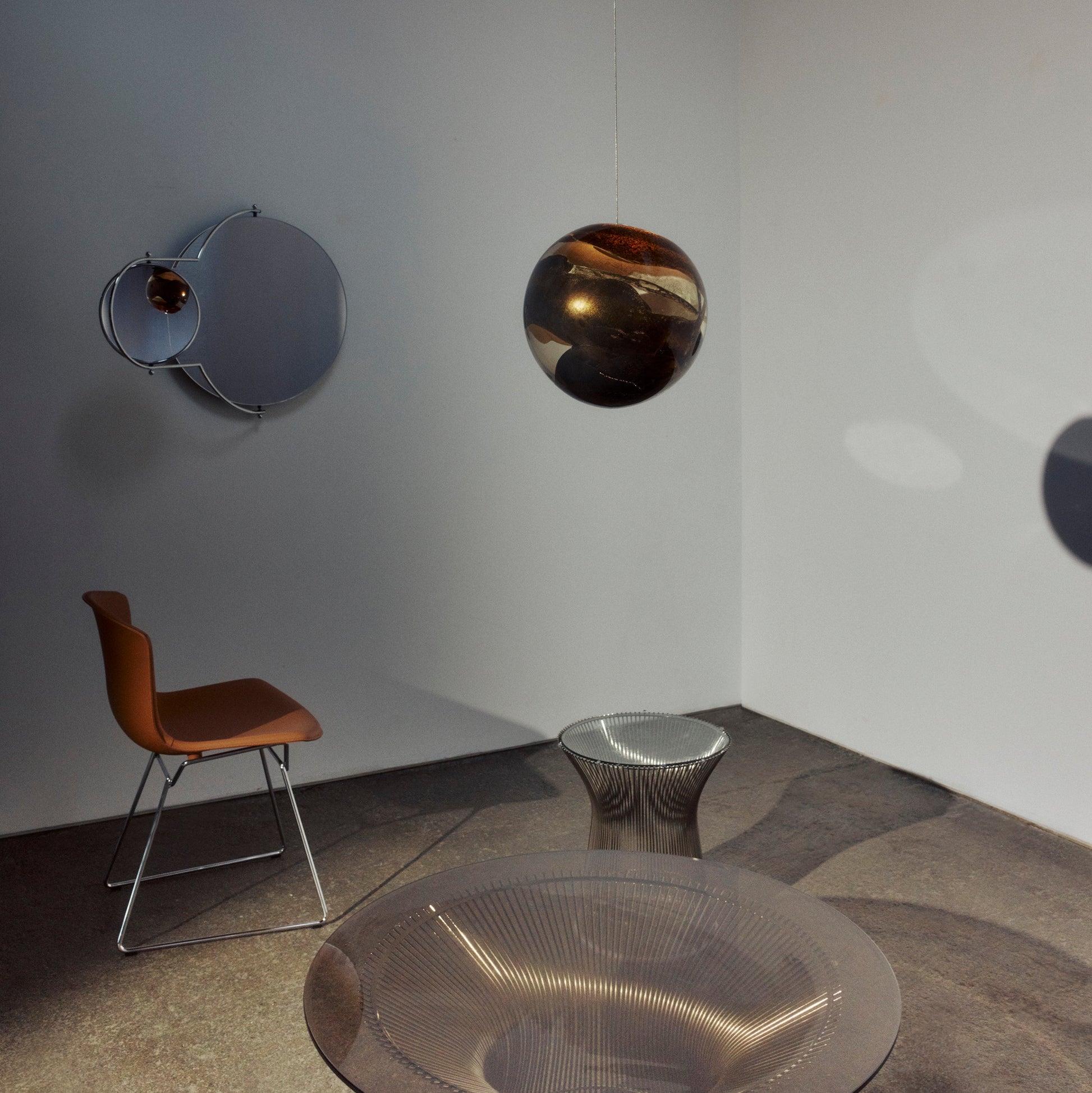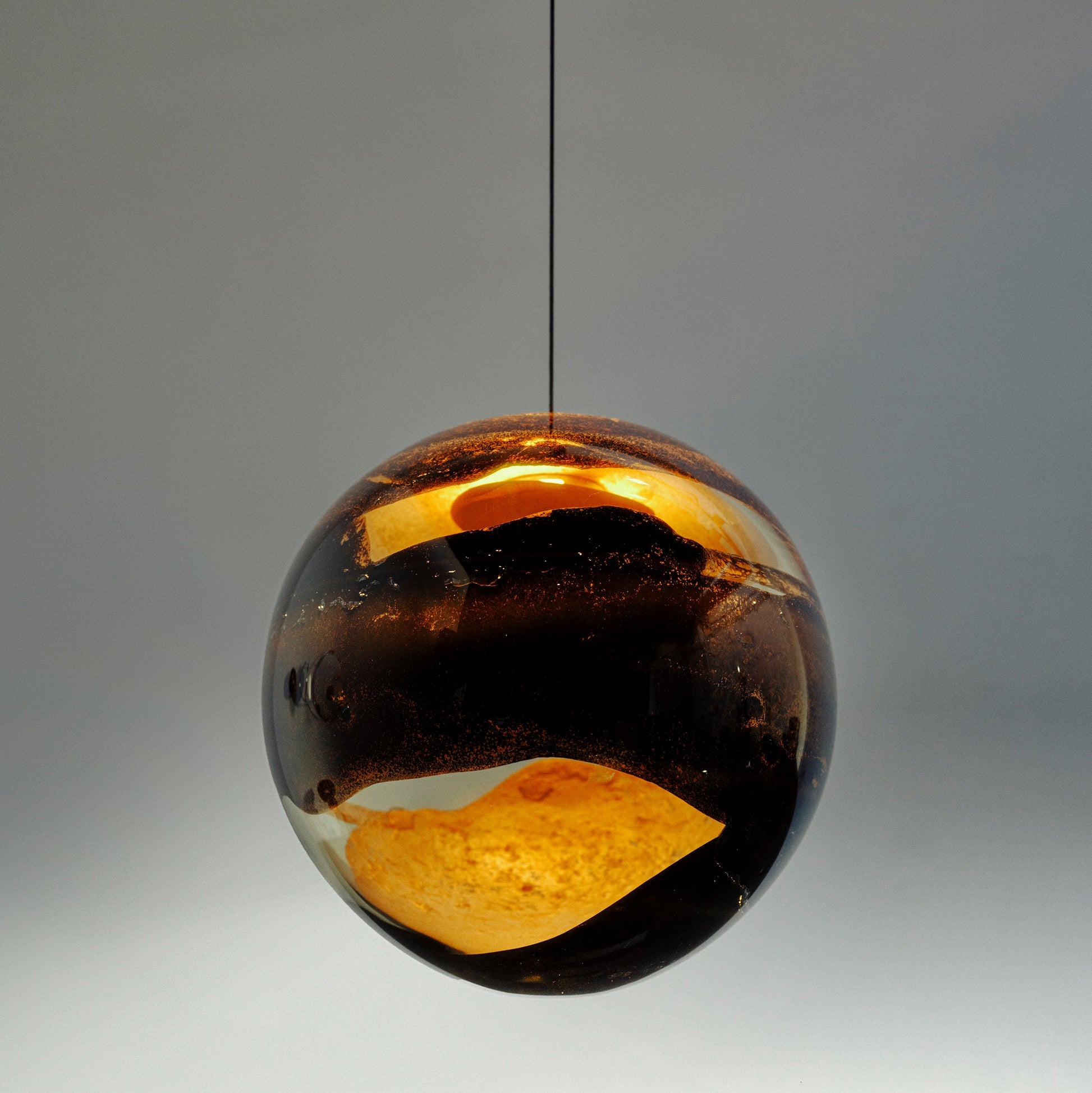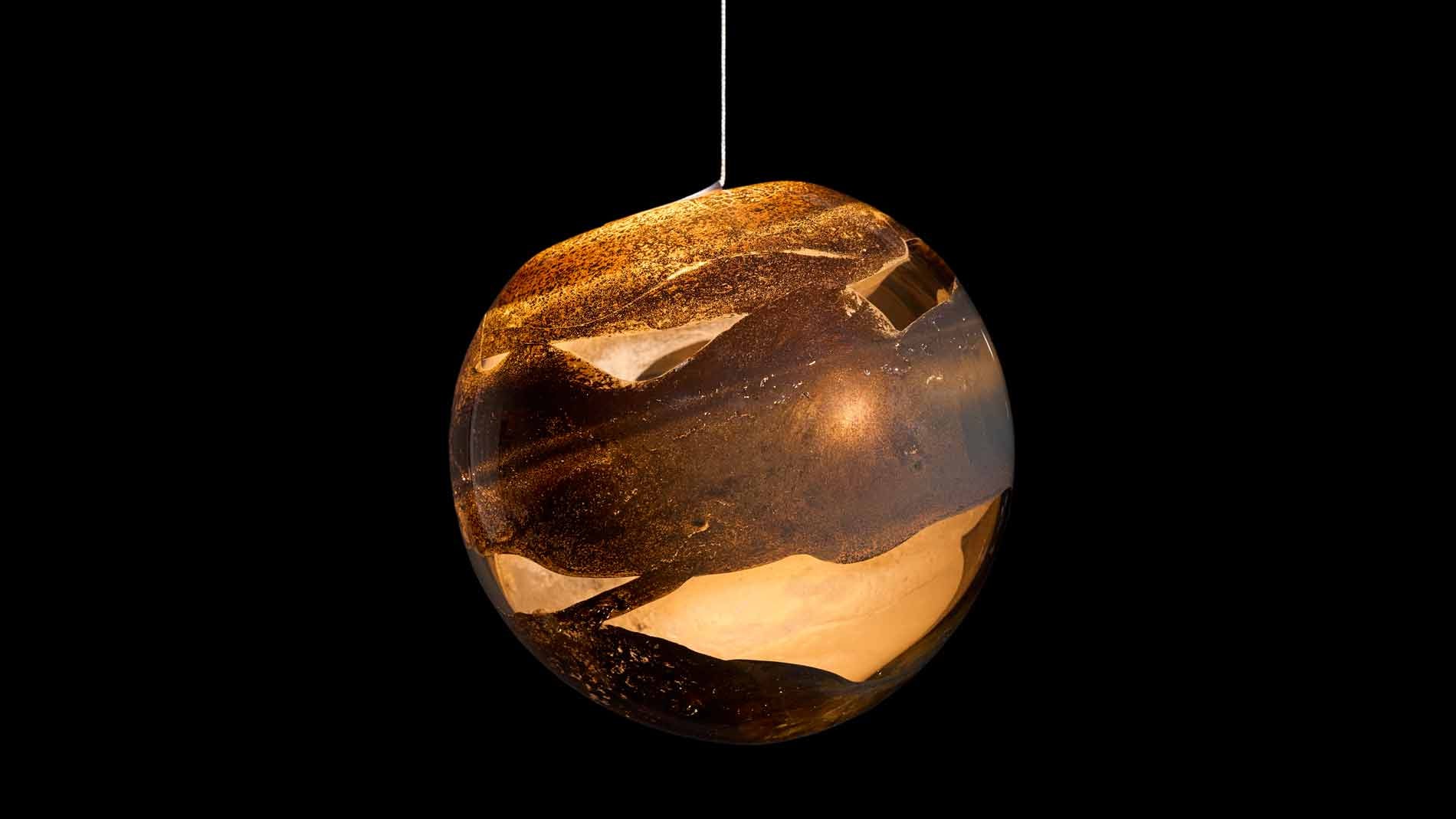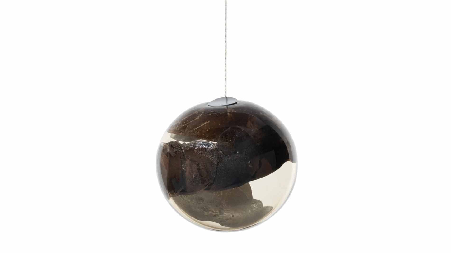 The 93 pendant lamp is a masterfully crafted lighting object that unites craftsmanship and contemporary aesthetics. Molten aluminum is integrated into mouth-blown glass, creating organic, flowing surface textures. The internal light accentuates the oxidized metal tones and subtle traces of warmth, lending the piece a captivating depth. Each lamp is individually handcrafted in the Bocci studio in Vancouver – every piece is unique. An exclusive design object for spaces with discerning taste.