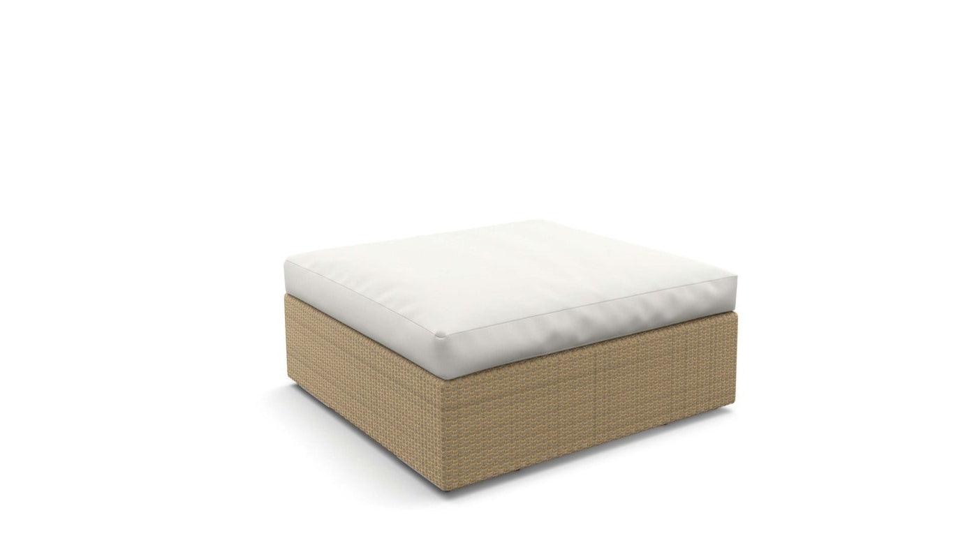The DEDON LOUNGE stool is made of recyclable DEDON wicker and a comfortable Dry+Plush seat cushion which is available in three different fabric categories and many different colors.