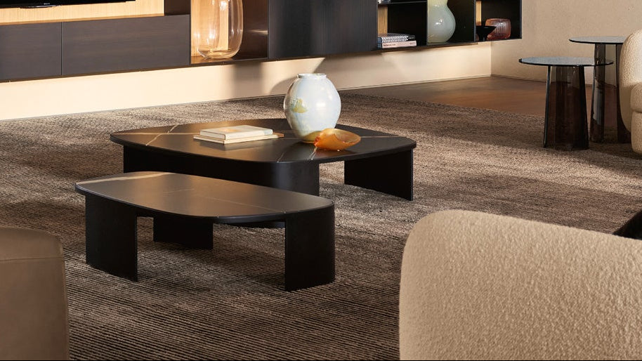 Cannelé verbindet Handwerkskunst mit visueller Eleganz. Dieser zweifarbige Designerteppich fasziniert durch das Zusammenspiel zweier Webtechniken: strukturiertes Bouclé in tiefem Schwarz trifft auf handgeschnittene Florflächen in zartem Perlweiß. Die Kombination aus Himalaya-Wolle, feiner Bambusseide und Baumwolle schafft eine Oberfläche mit außergewöhnlicher Haptik und Langlebigkeit. Jedes Stück entsteht in aufwendiger Handweberei – ein zeitloses Statement für anspruchsvolle Interieurs, das Raum und Charakter verleiht.