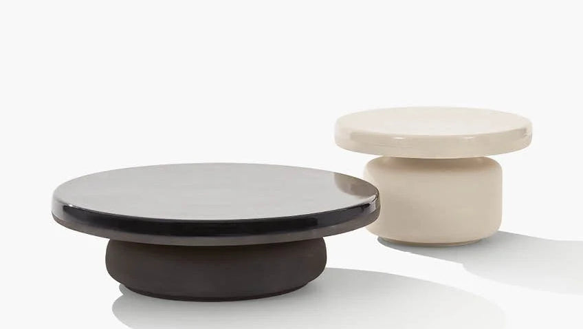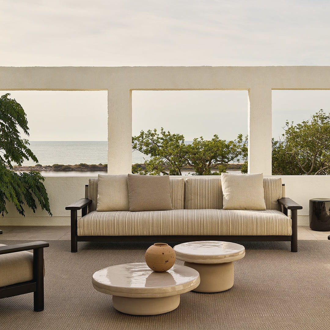 Der Crew Beistelltisch überzeugt durch seine robuste Konstruktion aus glasiertem Feinsteinzeug. Die durchdachte Materialkomposition verbindet den natürlichen Charakter des unbehandelten Sockels mit einer schützenden Glasur auf der Tischplatte – ein subtiles Zusammenspiel, das visuelle Tiefe schafft und gleichzeitig Langlebigkeit garantiert.