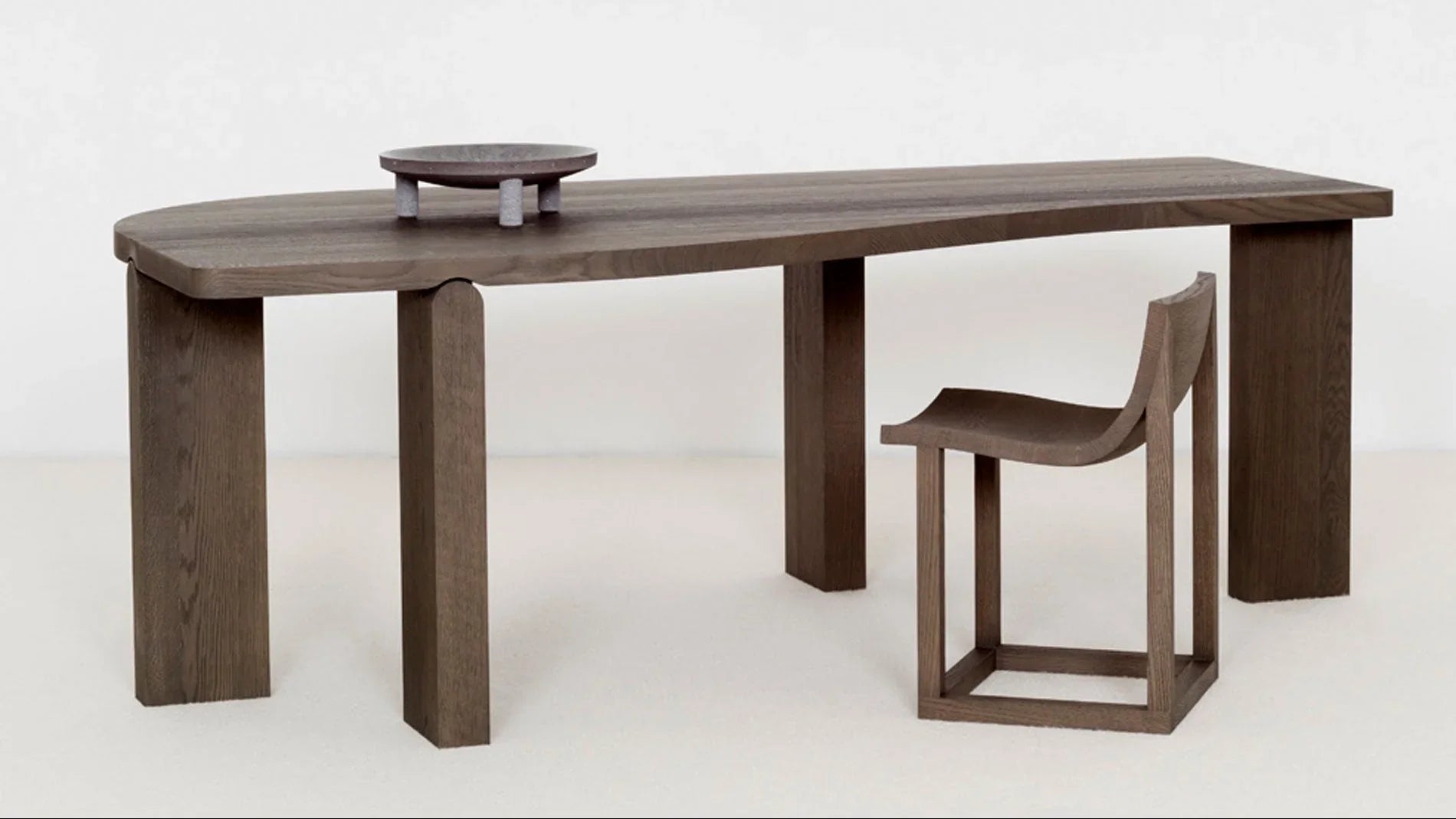 Der Edo Schreibtisch von Christophe Delcourt präsentiert sich als Meisterwerk durchdachter Formensprache. Seine asymmetrische Arbeitsplatte mit geschwungenem Kantenprofil schafft eine organische Eleganz, die sich von konventionellen Schreibtischen unterscheidet. Die charakteristischen Dielenbeine bilden eine stabile, minimalistische Basis und unterstreichen die reduzierte Ästhetik des Entwurfs. Jedes Detail offenbart die französische Handwerkskunst der Delcourt Collection – ein Möbel für Räume mit anspruchsvollem Designverständnis.