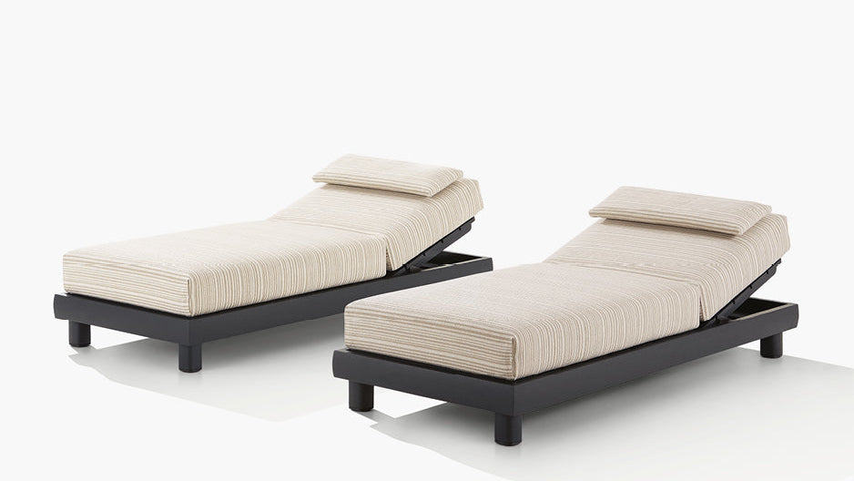 Die maritime Ästhetik von Jean-Marie Massauds Ketch-Kollektion findet ihre Vollendung in dieser eleganten Outdoor-Liege. Mit ihrer robusten Iroko-Holzstruktur bietet sie die gleiche solide Handwerkskunst wie die passenden Sofas und Sessel der Serie und schafft eine stabile Basis für die großzügigen, weichen Polster. Die neigbare Rückenlehne lässt sich individuell anpassen und wird durch ein ergonomisches Kopfkissen zusätzlich gestützt. Ein praktisches Staufach hinter der Lehne ermöglicht es, Handtücher und Accessoires diskret zu verstauen – perfekt für entspannte Tage im Freien.