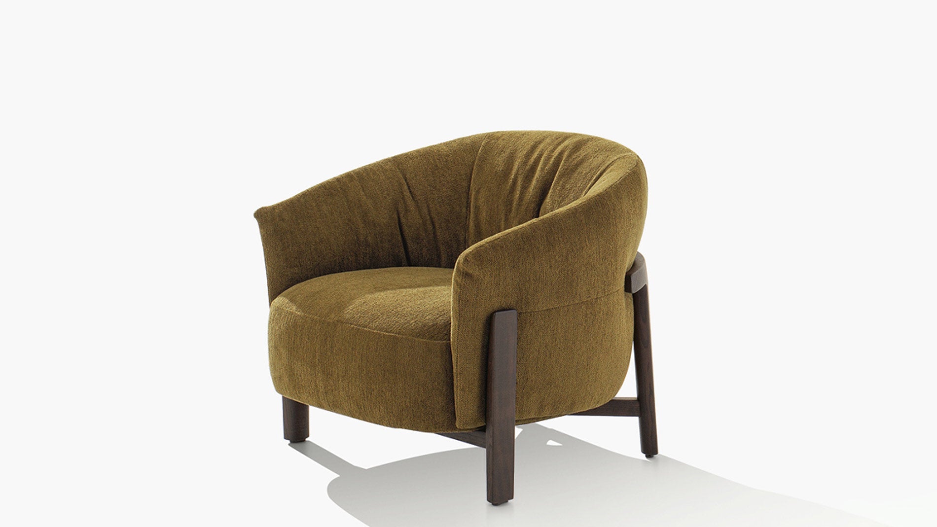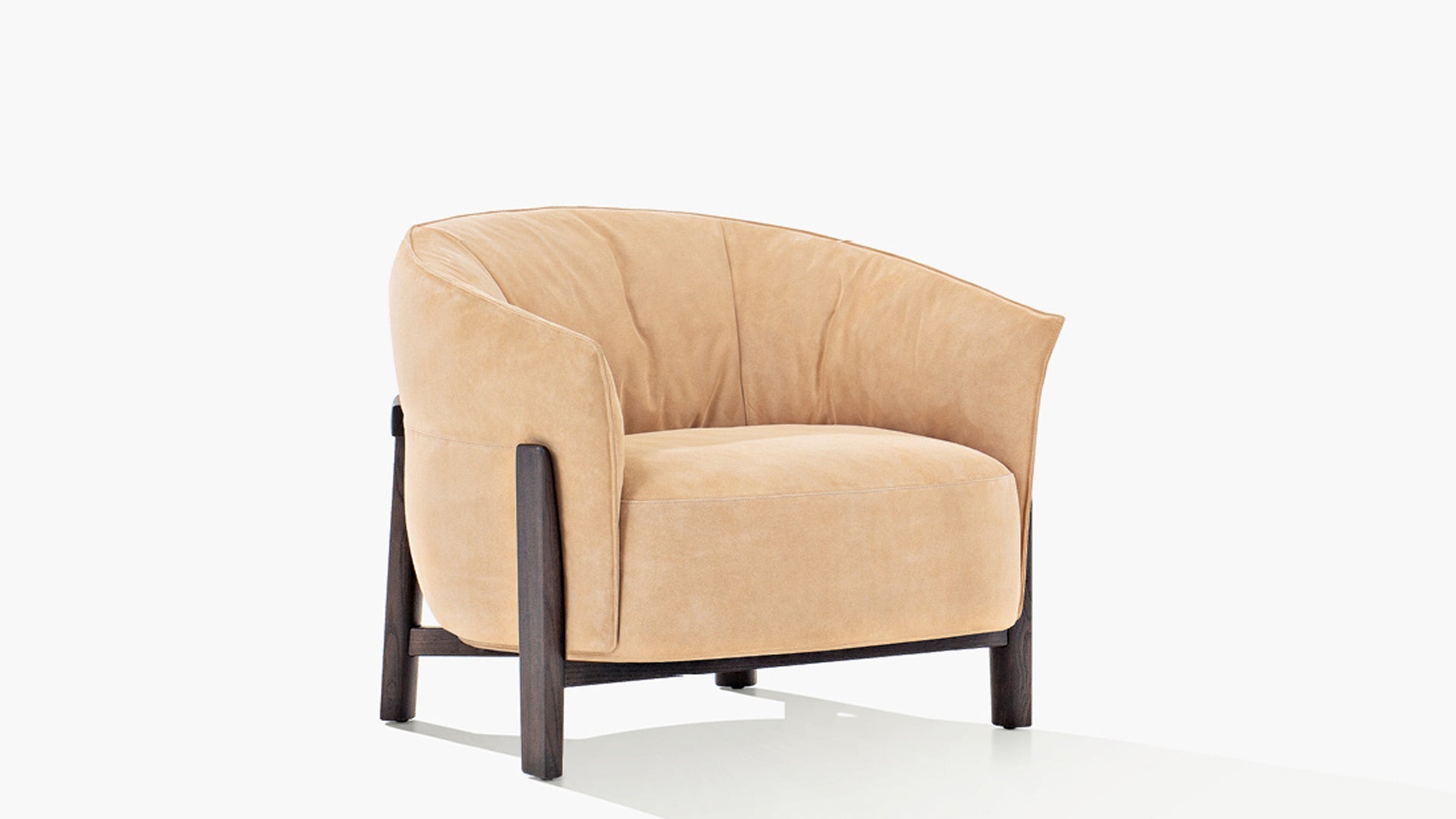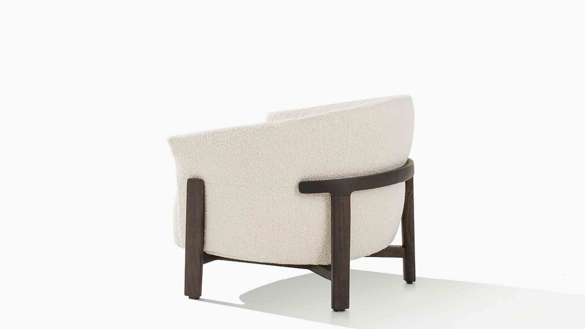 Hochwertiger Sessel mit Massivholzgestell in Spessart-Eiche oder schwarz gebeizter Ulme. Der abnehmbare Bezug ist in verschiedenen Stoff- und Lederoptionen der Poliform-Kollektion erhältlich.