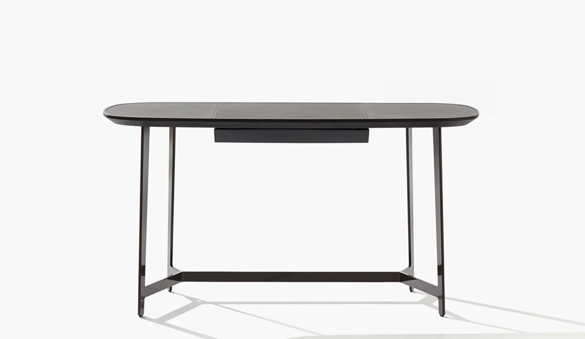 Der Mathieu Schreibtisch verbindet zeitgenössisches Design mit durchdachter Funktionalität. Seine elegante Konstruktion besticht durch feine Metallprofile und eine raffinierte Platte aus Holz mit Ledereinsatz, deren sanfte Kurven die klaren Linien der lackierten Struktur harmonisch ausgleichen. Dank der flexiblen Zubehöroptionen – darunter eine praktische Unterschublade und ein eleganter Spiegel – lässt sich dieser Schreibtisch mühelos auch als stilvolles Möbelstück im Schlafzimmer integrieren und passt sich Ihren individuellen Bedürfnissen an.
