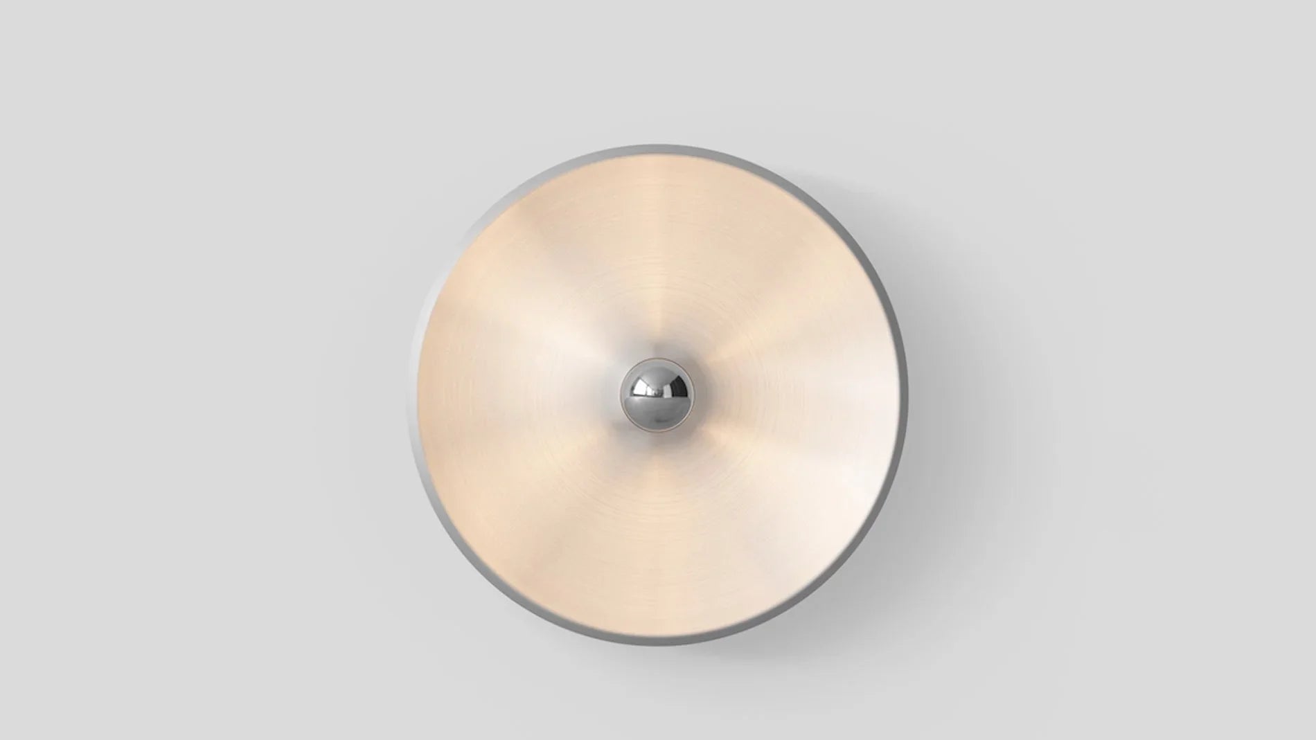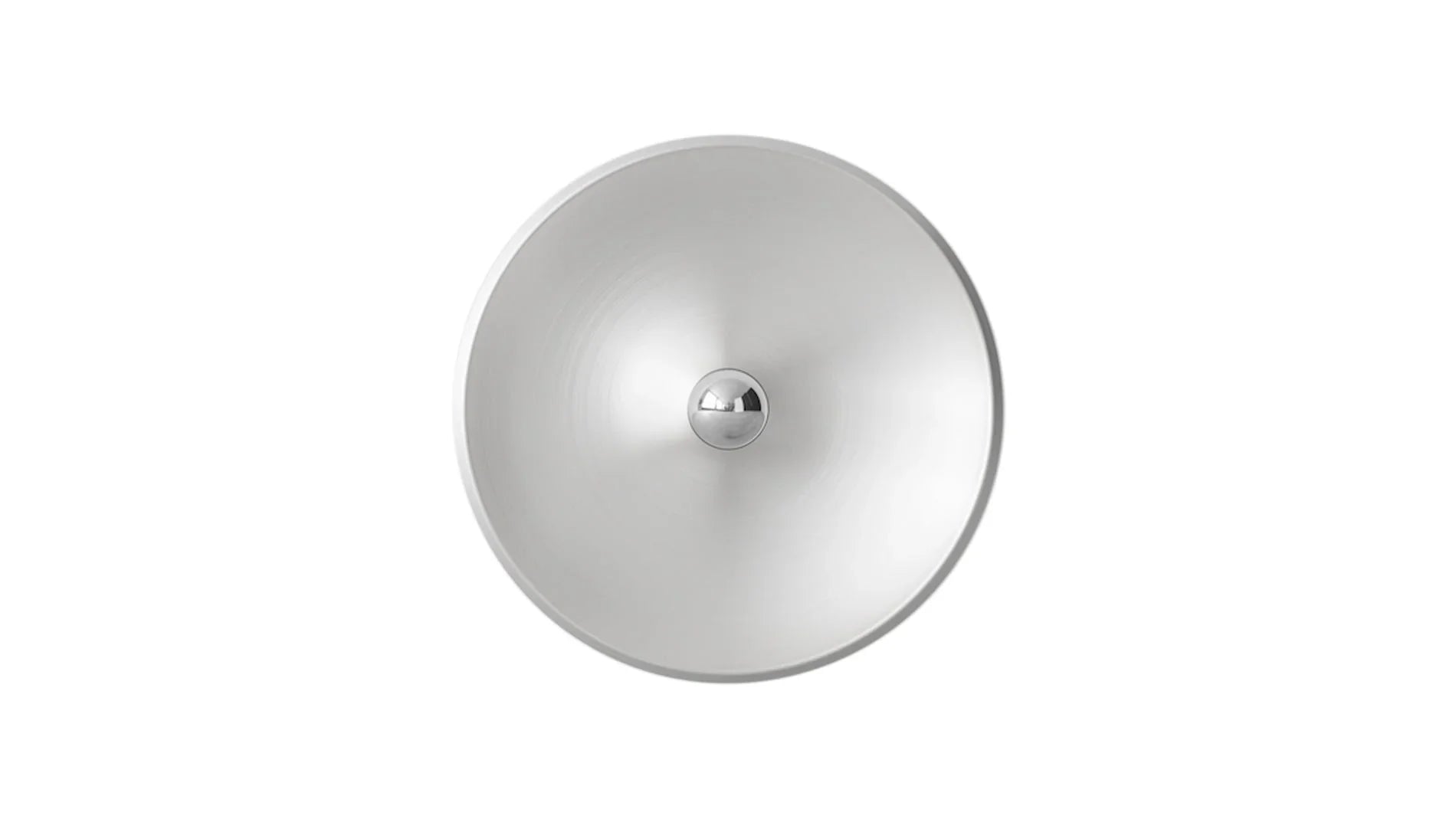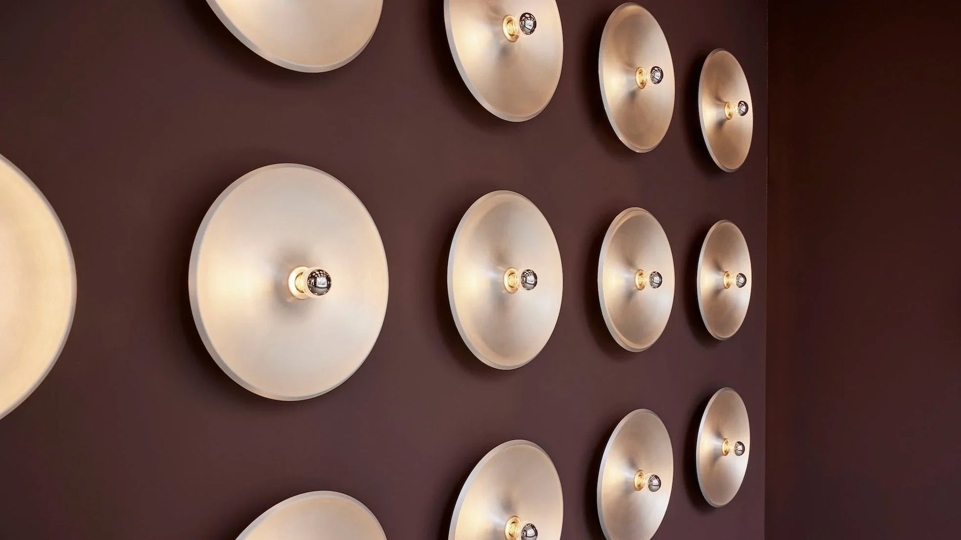Die Leuchte besteht hauptsächlich aus satiniertem Aluminium. Dieses Material verleiht ihr ein schlichtes, industrielles Aussehen und reflektiert Sarfattis Fokus auf authentische Materialien.