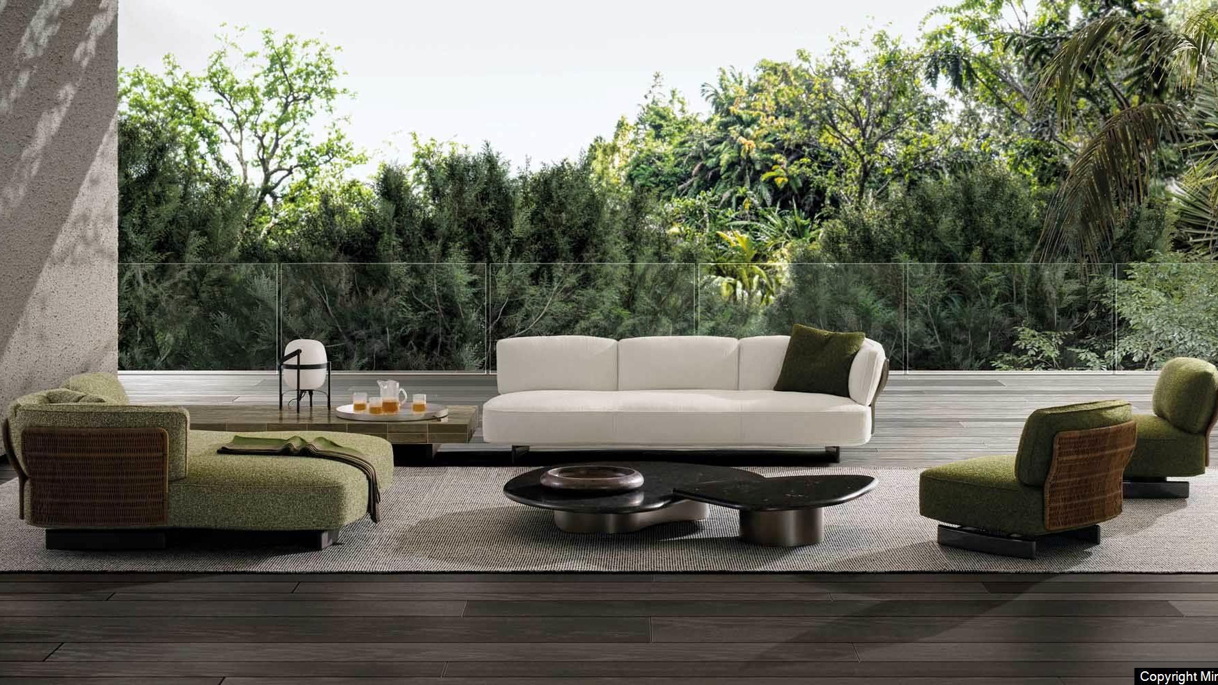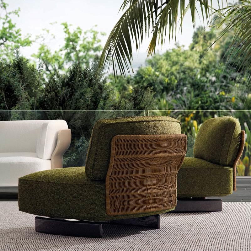 Entdecken Sie den Saki "Cord" Outdoor Sessel – das Meisterwerk von Nendo, das japanische Designphilosophie mit modernem Komfort vereint. Die charakteristischen geflochtenen Seilpaneele in Rattanoptik schaffen eine faszinierende visuelle Tiefe, während die blütenförmigen Konturen Rücken- und Armlehnen eine organische Eleganz ausstrahlen. Gönnen Sie sich unvergleichlichen Komfort durch die großzügige Sitzfläche und die sanft anschmiegenden Rückenkissen, die perfekt auf den geschwungenen Paneelen ruhen. Mit zahlreichen Ausführungsvarianten können Sie Ihren persönlichen Stil ausdrücken und einen Außenbereich schaffen, der Raffinesse und Individualität widerspiegelt. Ein Investment in zeitloses Design und außergewöhnliche Qualität.