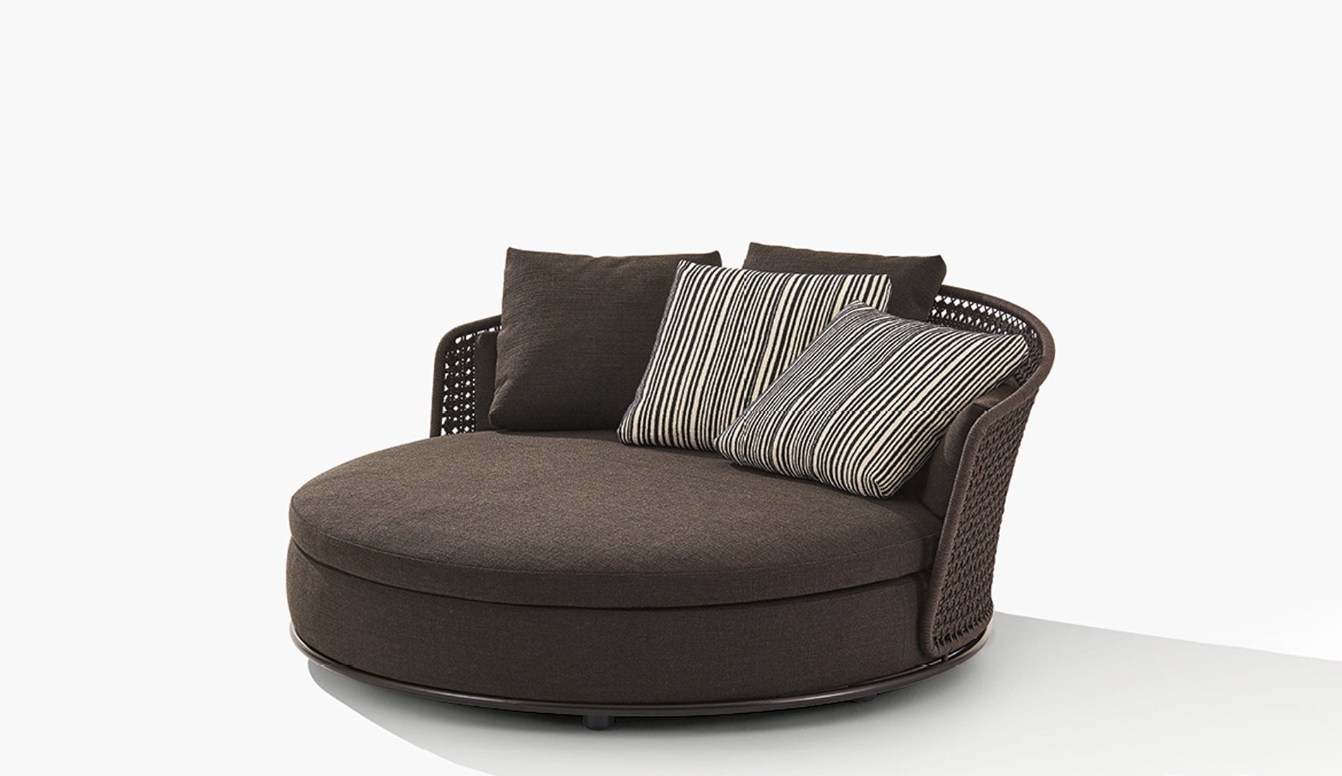 Schaffen Sie sich einen persönlichen Rückzugsort im Freien mit dem Soori Outdoor Day Lounge. Dieses rundliche Daybed verbindet durchdachtes Design mit höchstem Komfort und lädt Sie ein, die warmen Tage in vollständiger Entspannung zu genießen. Die kunstvoll geflochtene Rückenlehne und die sorgfältig ausgewählten Bezugsstoffe mit angenehmer Haptik machen jeden Moment auf Ihrer Terrasse oder im Garten zu einem Erlebnis der Ruhe und des Wohlbefindens.