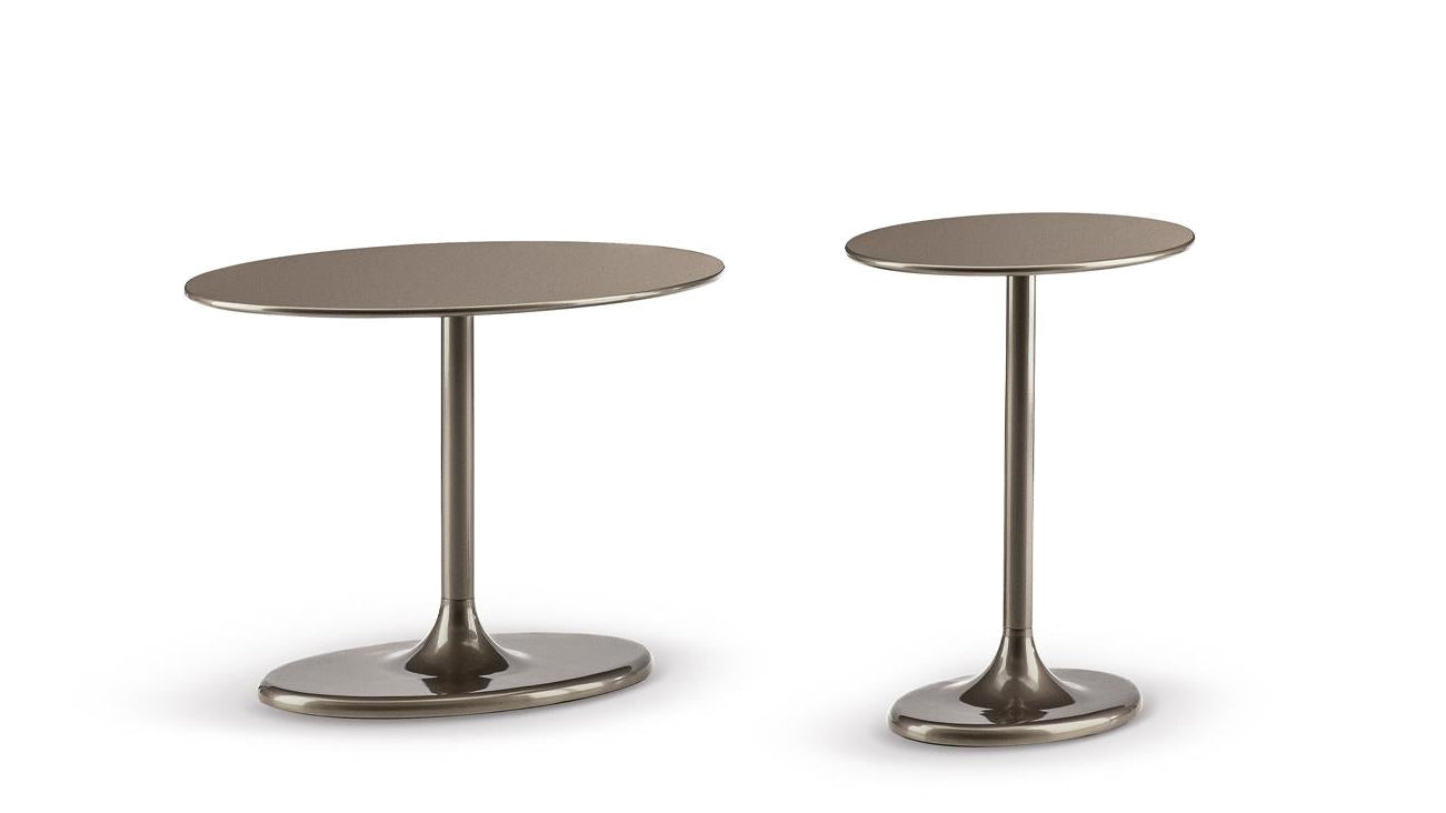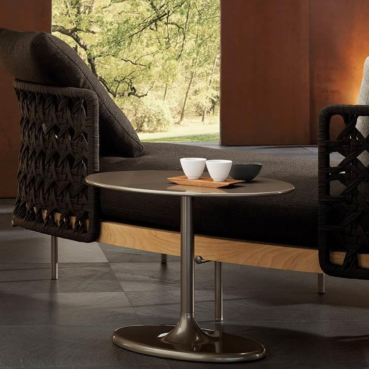 Der Taiko "Outdoor" Beistelltisch bringt die bewährte Eleganz des Innenbereichs ins Freie. Die ovale Aluminium-Platte besticht mit ihrer hochwertigen Lackierung in Bronze, Mokka oder Cappuccino sowie in den soften Tönen Ecru und Dunkelbraun. Ein robuster Aluminiumguss Sockel in harmonischer Farbabstimmung garantiert Stabilität und zeitloses Design.