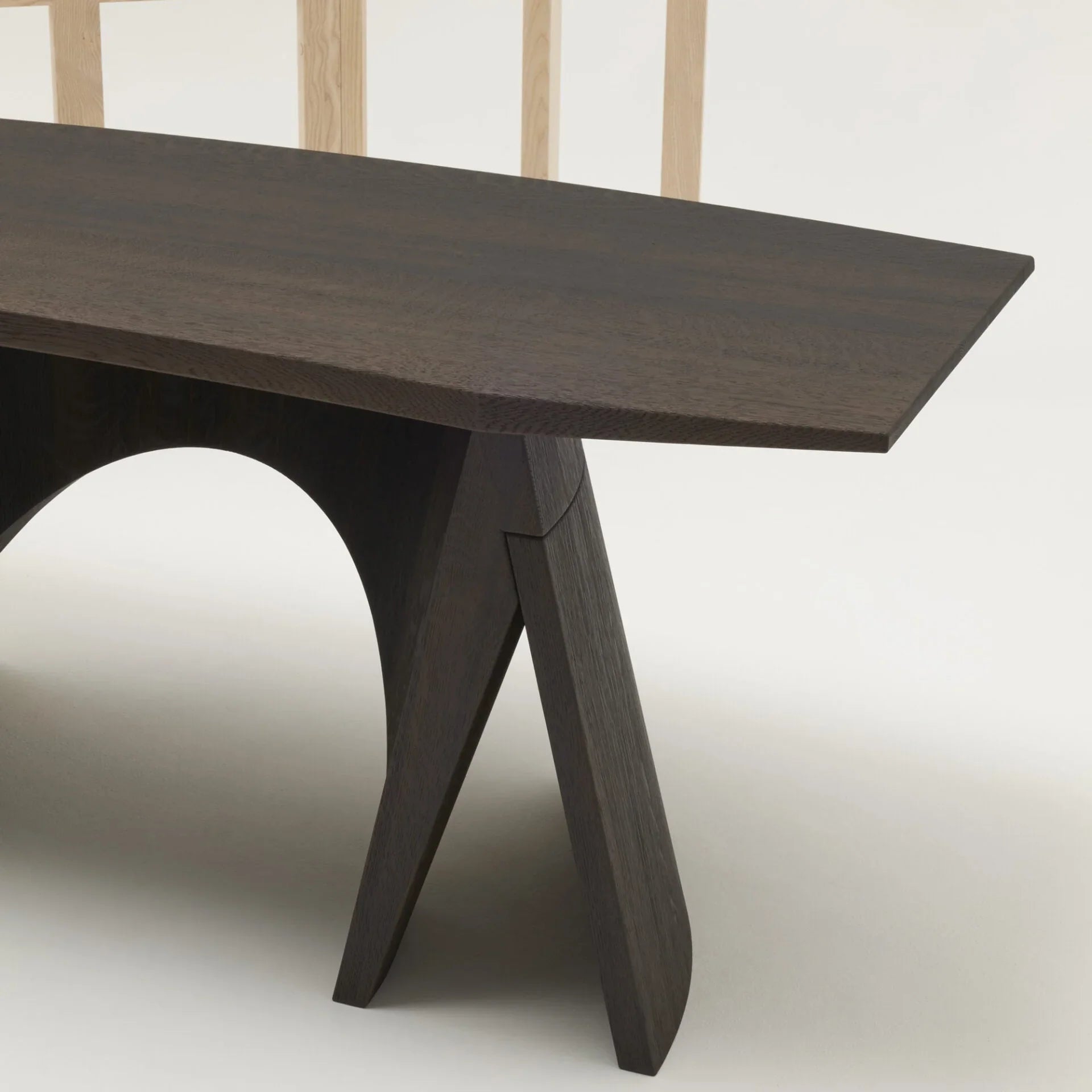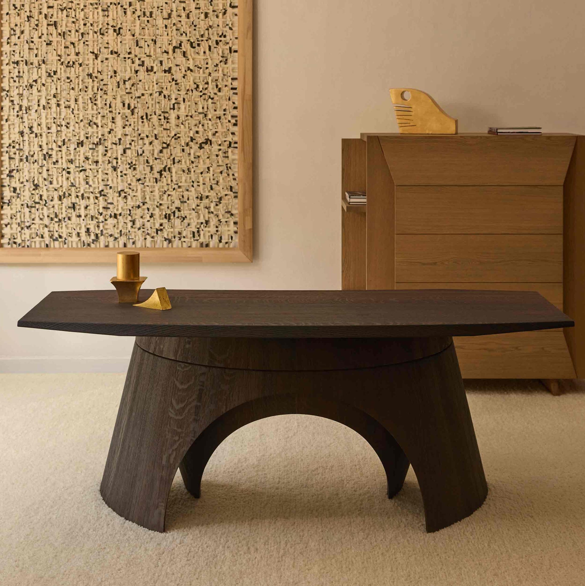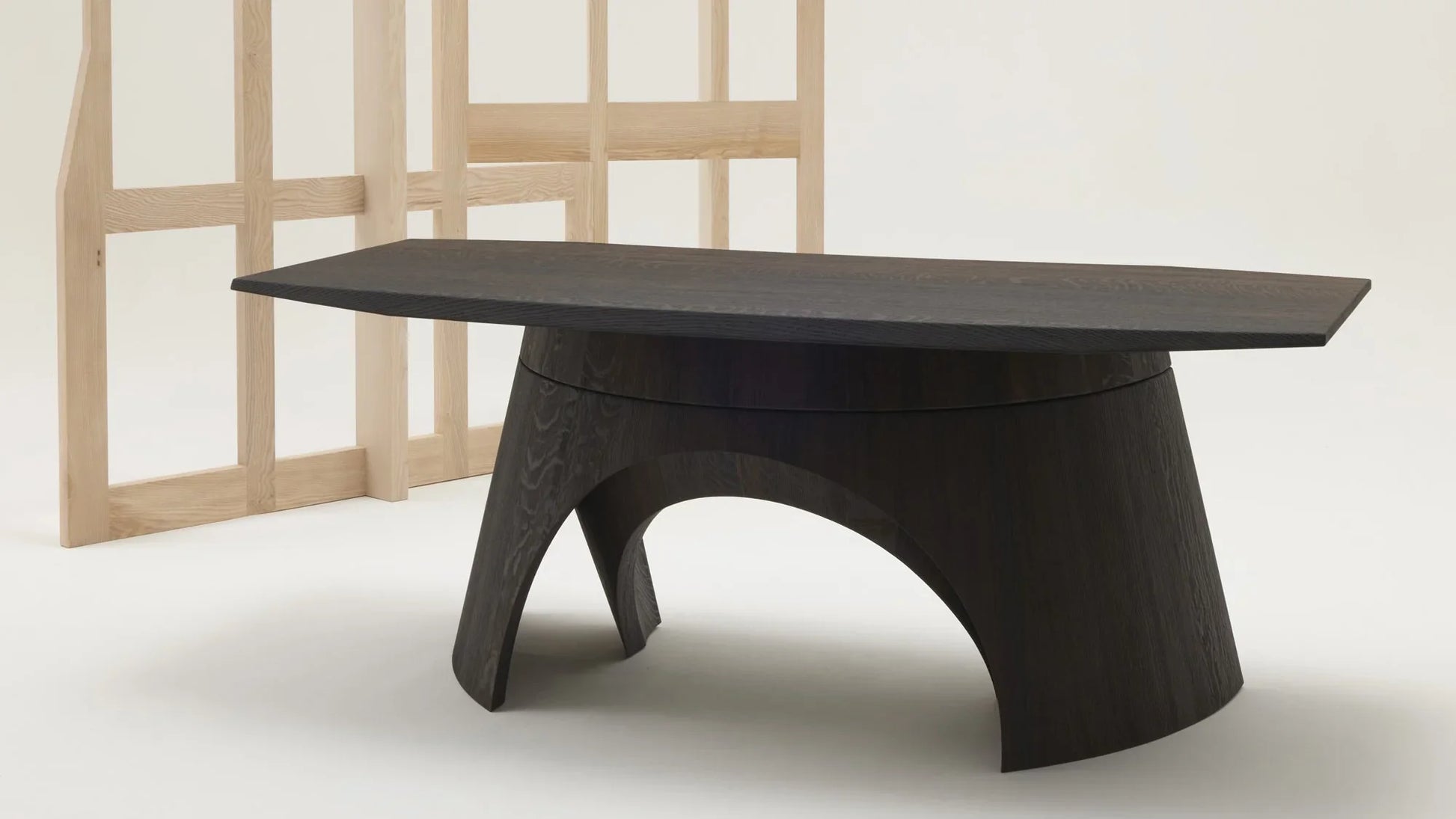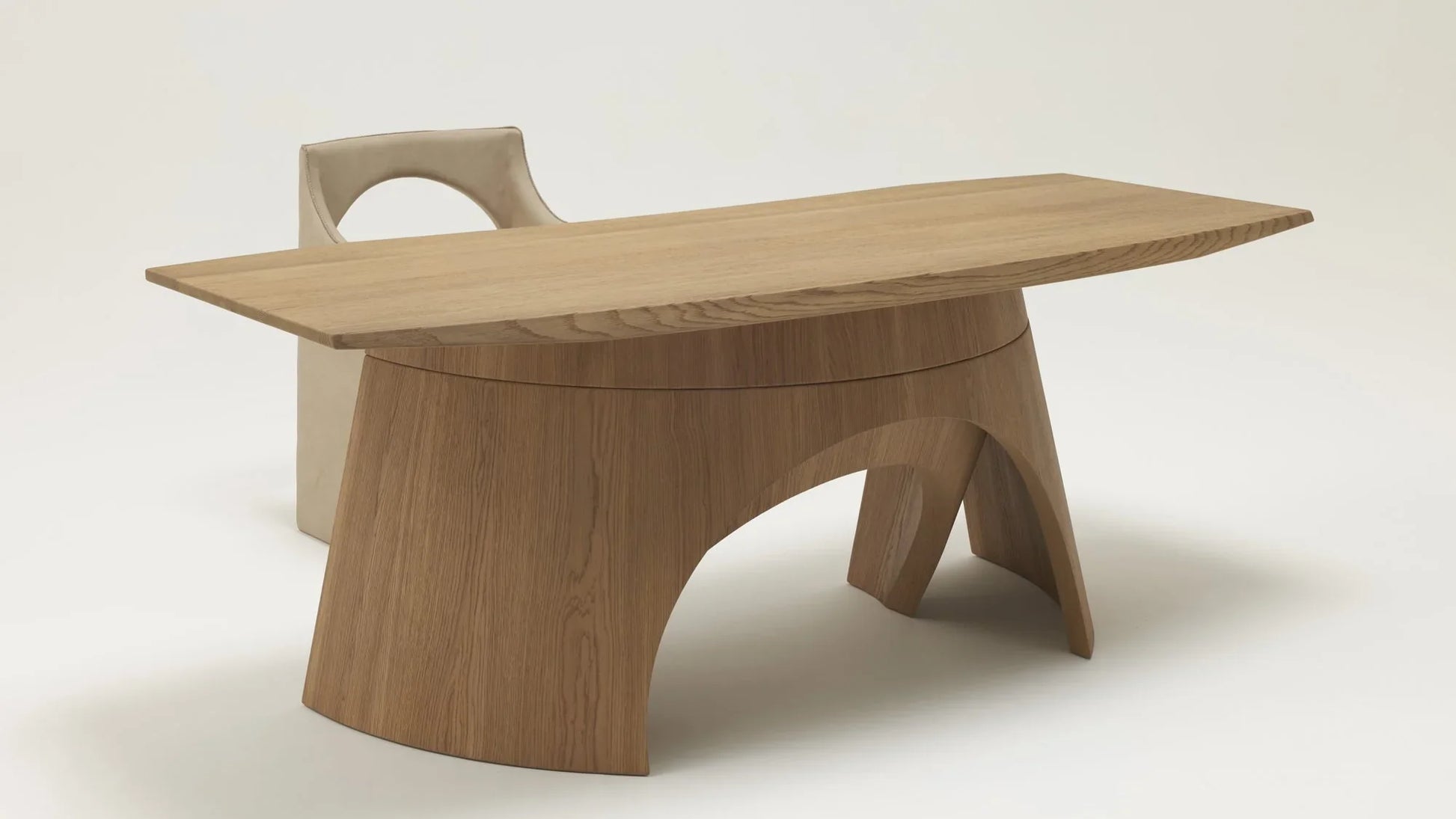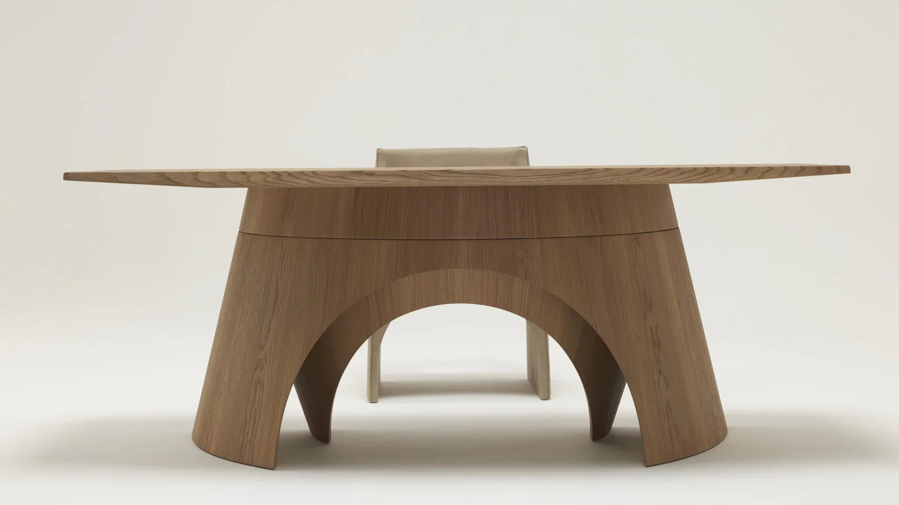 Der Uto Schreibtisch verkörpert eine meisterhafte Interpretation klassischer Designprinzipien. Christophe Delcourts Entwurf für die Delcourt Collection nutzt die geometrische Eleganz der Kompassbeine als konzeptionelle Grundlage und transformiert diese in ein raffiniertes Möbelstück. Durch das subtile Wechselspiel zwischen äußeren Konturen und inneren Gegenformen entsteht eine visuelle Harmonie, die Leichtigkeit mit struktureller Stabilität verbindet. Die Konstruktion besticht durch ihre architektonische Präzision – komplex in der Ausführung, doch transparent in ihrer Formensprache. Das Ergebnis ist ein Schreibtisch, der sowohl ästhetische Ansprüche erfüllt als auch funktionale Anforderungen elegant bewältigt.